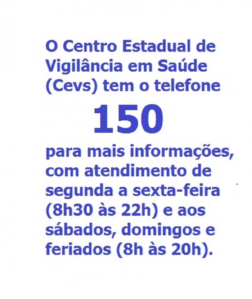 Caso a população encontre macacos mortos ou doentes, deve informar o mais rapidamente ao serviço de saúde do município ou do Estado. O Centro Estadual de Vigilância em Saúde (Cevs) dispõe do telefone 150 para informações, com atendimento de segunda a sexta-feira (das 8h30 às 22h) e aos sábados, domingos e feriados (das 8h às 20h).